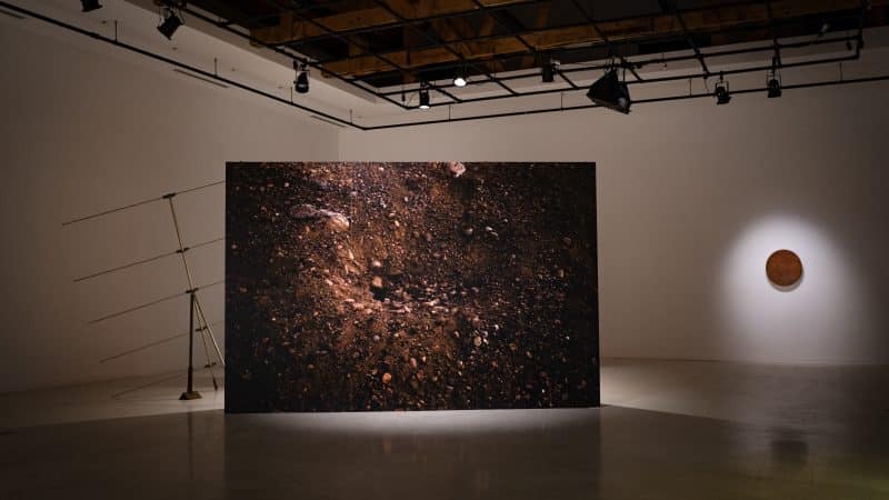 Premier projet commun des artistes Gabriel Fortin et Mariane Tremblay, État Plasma est une installation rétrofuturiste multiforme cultivant l’aura de mystère qui entoure encore aujourd’hui une mission secrète américaine menée dans les années 1980 à Sainte-Hedwidge au Saguenay-Lac-Saint-Jean. Depuis cette époque, des théories du complot ont émergé après qu’un énorme trou aurait présumément été créé dans l’ionosphère pour améliorer la transmission de radiofréquences.